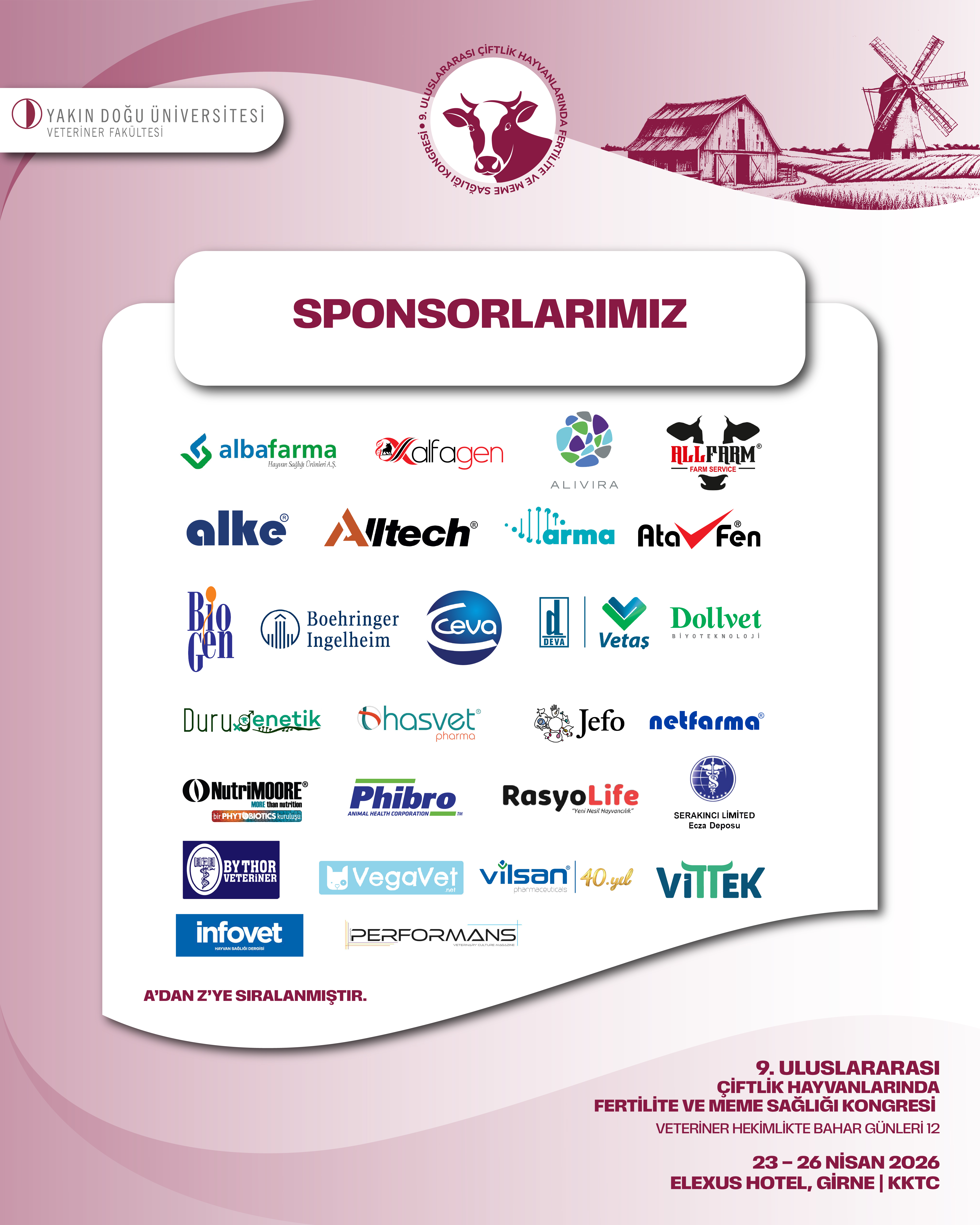 Yakın Doğu Üniversitesi Veteriner Fakültesi Doğum ve Jinekoloji Anabilim Dalı olarak, 2014 yılında Prof. Dr. Selim ASLAN başkanlığında başlattığımız ve artık gelenekselleşen Veteriner Hekimlikte Bahar Günleri kapsamında düzenlediğimiz Uluslararası Çiftlik Hayvanlarında Fertilite ve Meme Sağlığı Kongresi’nin dokuzuncusunu, Kıbrıs adasının en güzel mevsiminde, 23–26 Nisan 2026 tarihleri arasında turizmin gözde merkezi Girne’de gerçekleştirecek olmanın heyecanını ve mutluluğunu yaşıyoruz.